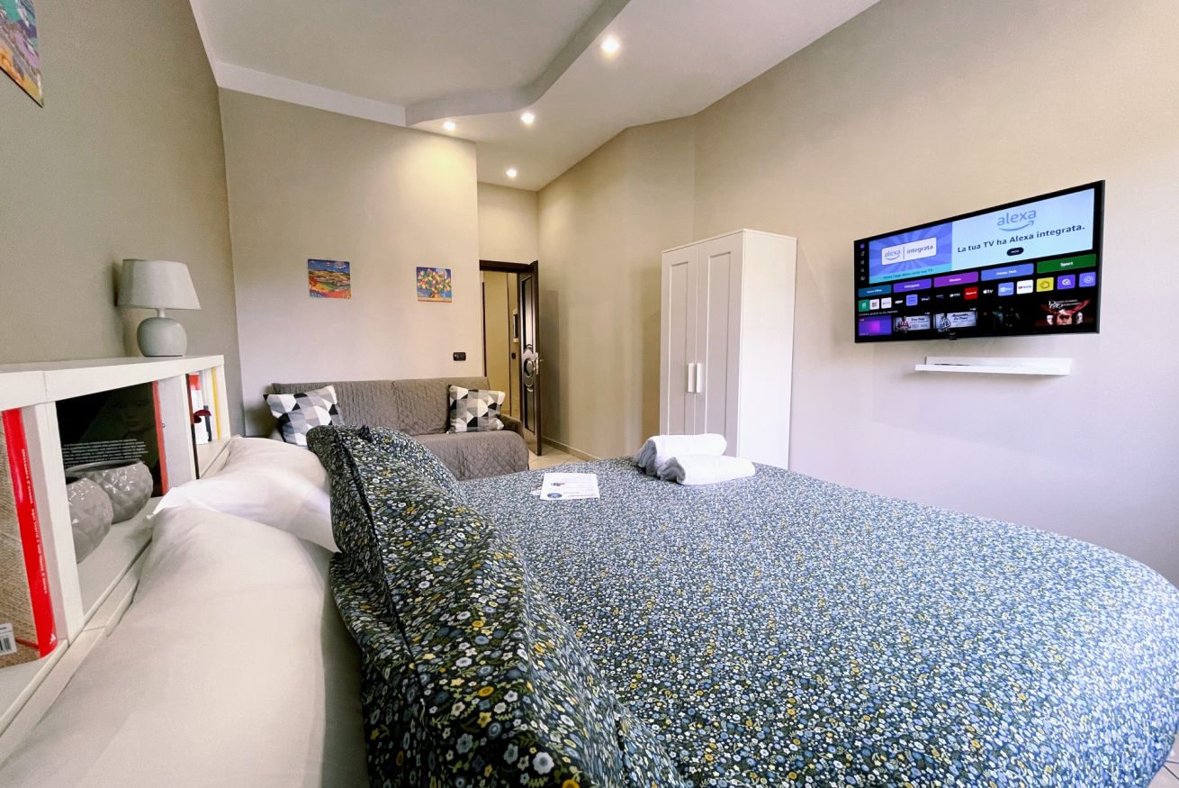 Dispone di letto matrimoniale 190x160 cm, e divano letto matrimoniale 190x160 cm.